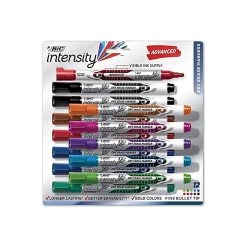 - One 12-count pack of BIC Intensity Advanced Colorful Dry Erase Markers with a fine 4.2mm bullet tip that creates neat, precise lines