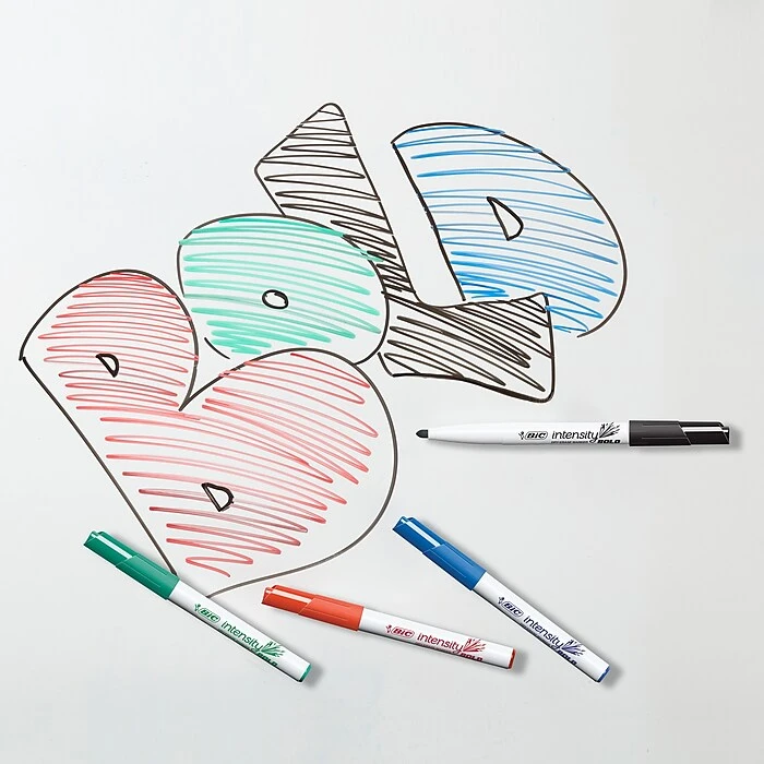 Bring bold, bright color to whiteboards and other non-porous surfaces with these BIC Intensity Low Odor Dry Erase Markers. The fine-point tips are ideal for creating precise lines, and each marker features an ultra-comfy rubber grip, offering comfort and control while you write. With a non-toxic, low-odor formula that is nose-friendly, these smooth-writing dry erase are ideal for use in schools, hospitals, and offices.