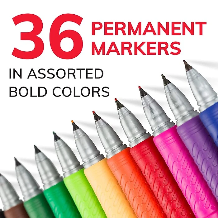 - Pack of 36 assorted fine point markers with vivid fashion-colored ink