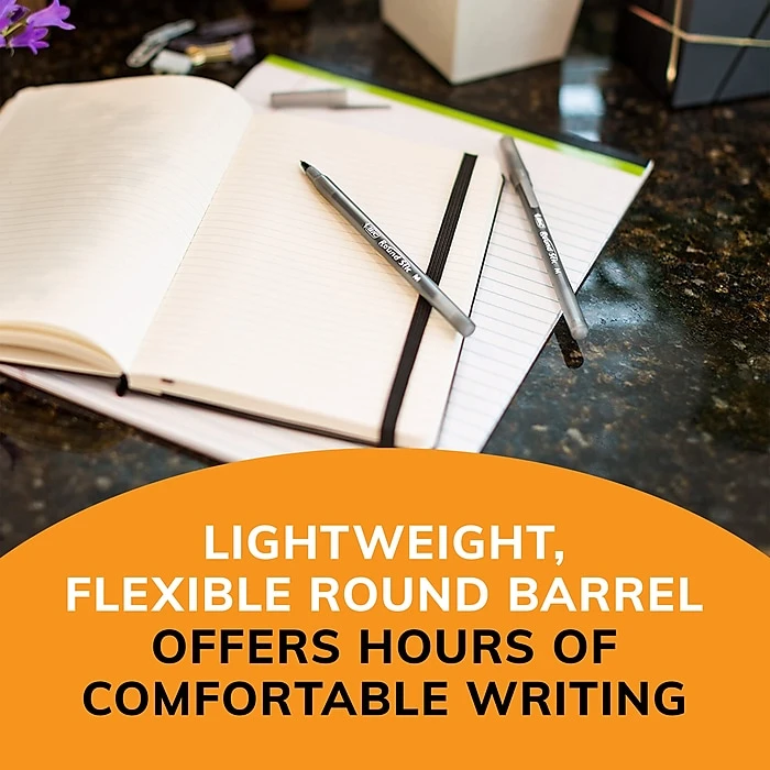 Combine exceptional performance and longevity with BIC Round Stic Xtra Life Black Ballpoint Pens. The flexible 1.0 mm medium point pens deliver crisp, legible lines, making these black ink pens a superb choice for everyday writing activities. BIC Round Stic Xtra Life Black Pens are the ideal smooth pens for writing — minimizing blotting and skipping as the tungsten carbide ball helps the black ink spread evenly. BIC Round Stic Pens have translucent, flexible round barrels that let you see how much ink remains. The matching cap includes a handy clip for easy attachment to pockets or notebooks. Write the first time, every time with BIC Round Stic Xtra Life Black Ballpoint Pens — the No.1 selling ballpoint pen*. Each black ink pen in this pack writes 90 percent longer compared to Paper Mate InkJoy 100 Ball Stick Pen**, providing a cost-effective option when restocking office supplies. *Source: The NPD Group/ U.S. Retail Tracking Service/ Actual Unit Product Line Sales (Retail and Commercial Combined)/ Annual 2020). **Paper Mate and InkJoy are trademarks of Newell or an affiliate. Newell has not sponsored or approved and is not affiliated with this BIC branded product.