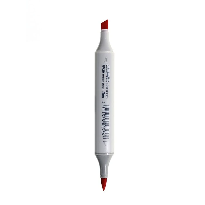 Copic Sketch markers with its Super Brush is the perfect tool for creative expression in fashion, graphics, textiles, fine arts lettering and calligraphy. Easy to use with the distinctive feel of a brush. Oval body profile is roll resistant on working surfaces. Durable polyester nibs — Medium Broad on one end and Super Brush on the other. Super Brush is a soft, flexible, fast-flowing brush for delicate or bold expression. Solid polypropylene body is both smooth and comfortable, for a perfect, controllable grip. Precise colored capping system provides for instant color selection. Used by manga artists, designers, and architects.