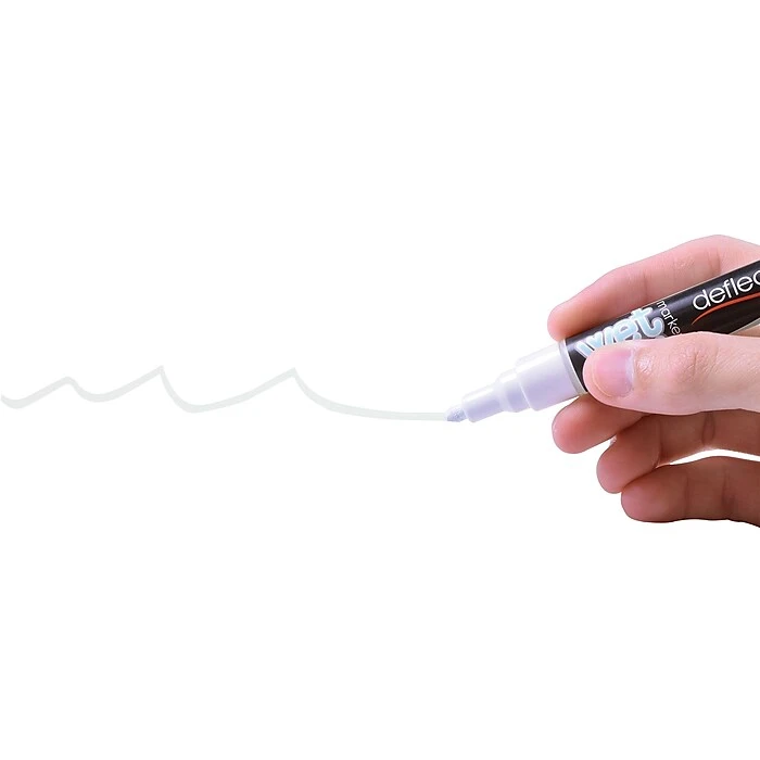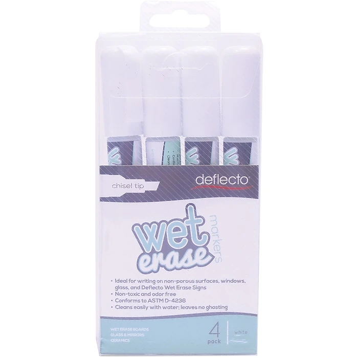 Create messages with Deflecto liquid chalk markers on glass, plastic and metal. These nontoxic markers are also designed so the white color won’t fade over time. When you’re ready to erase your creation, it is fast and easy with a wet eraser. Each package of Deflecto liquid chalk markers comes with four white markers featuring a chisel tip, letting you write clearly.