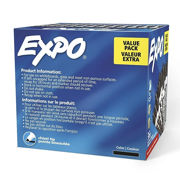 Expo Low Odor Dry Erase Markers use a specially formulated, alcohol-based ink with virtually no odor. The markers feature vivid ink that is quick-drying and easy to see from a distance. These dry erase markers write on whiteboards, glass and most non-porous surfaces.
