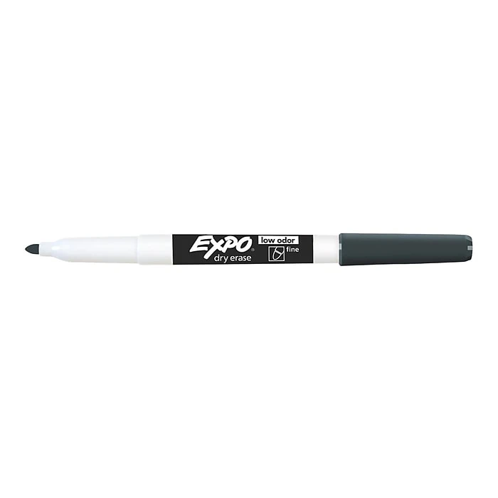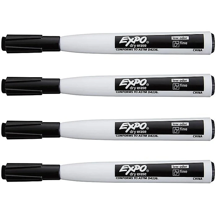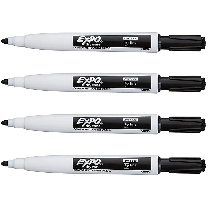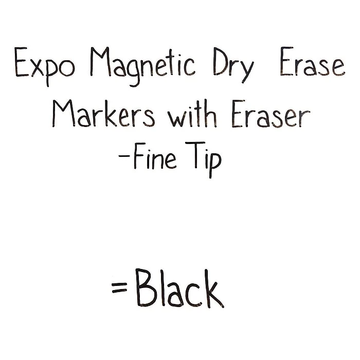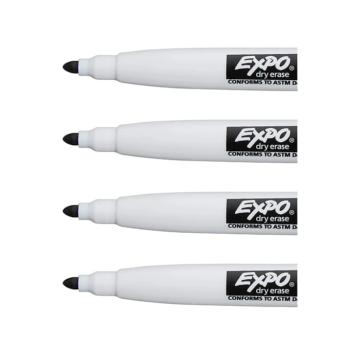 Draw easily on whiteboards with these magnetic dry-erase markers. The non-toxic markers feature a fine tip and a quick dry formula that reduces smudging. An eraser built into the cap ensures quick erasing and the integrated magnet allows for storing markers on metal surfaces. Each pack contains four black Expo magnetic dry-erase markers.