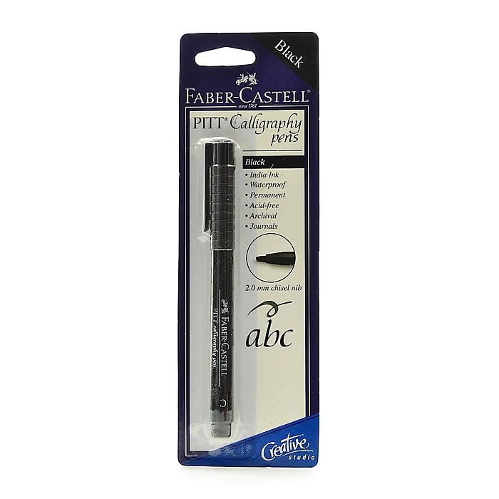 These calligraphy pens feature durable, 2 mm chisel nibs, great for invitations, journals, scrapbooking, and other paper crafts. The India ink in Pitt Calligraphy Pens in permanent, fade-resistant, waterproof, and acid-free.