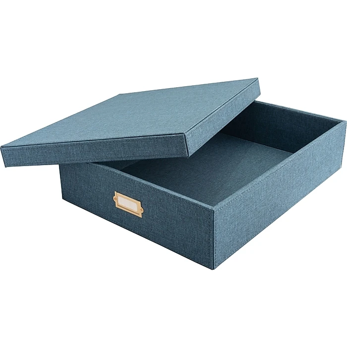 The Martha Steward stackable document box helps get your work productive and ordered. Great for use in the office, school, or home. Made of high-quality faux leather with linen texture in navy.