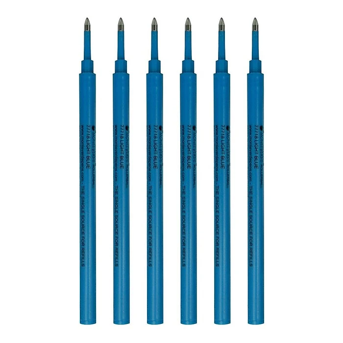 Monteverde® Ceramic rolleball blue refill to fit most roller ball pens has fine tip of stainless steel with ceramic ball which offers non-dry technology with cap off till one year enhancing joy of writing, sold as 6 per pack.
