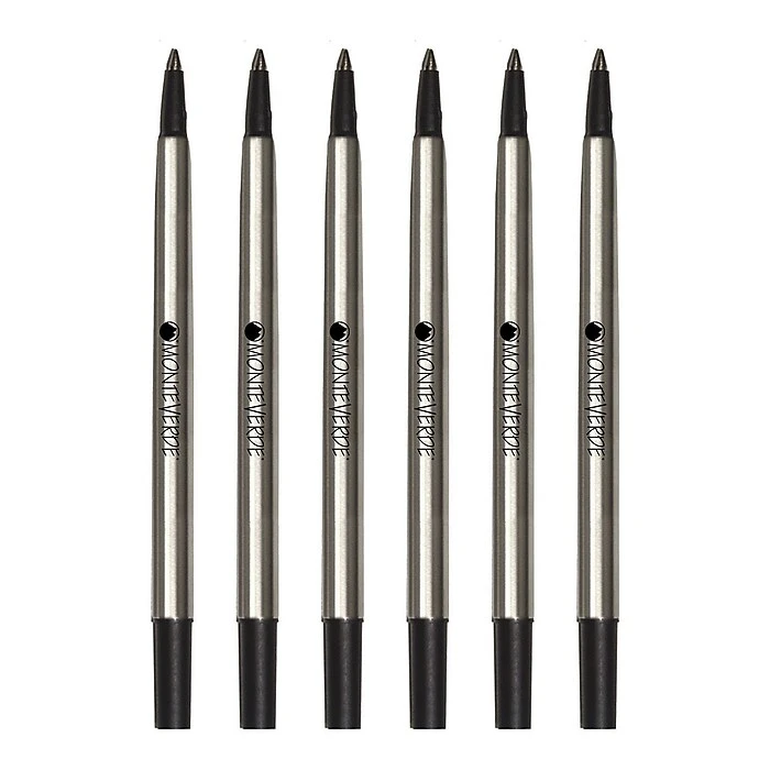 Monteverde® Roller ball refill in blue/black for Parker® roller ball pens features metal parts with high quality and fine formulated inks. Refill bears a stainless steel tube and has a fine Swiss tip for neat writing, sold as 4 per pack.