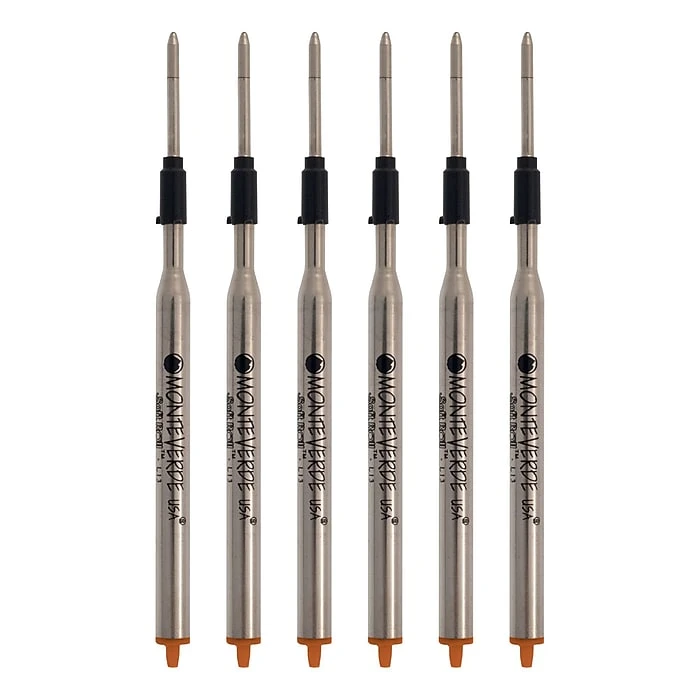Monteverde® Soft roll™ Medium point ballpoint refill in orange for Lamy® ballpoint pens features low viscosity ink for easy flow. Refill bears a nickel plated brass tube and a medium point swiss tip, sold as 6/pack.
