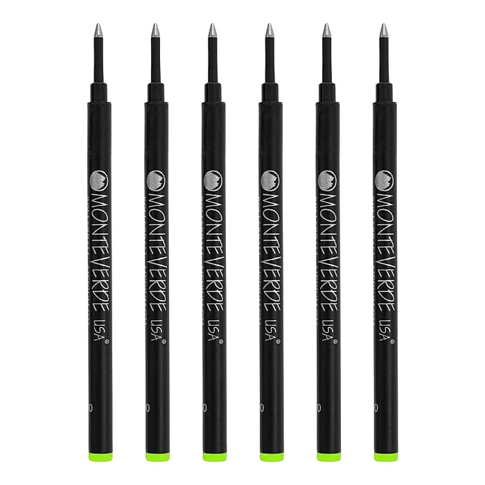 Monteverde® Ceramic roller ball lime green refill for capped roller ball pens has medium tip of stainless steel with ceramic ball which offers non-dry technology with cap off till one year and enhances your joy of writing, sold as 6 per pack.