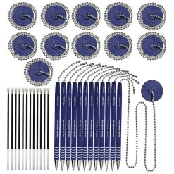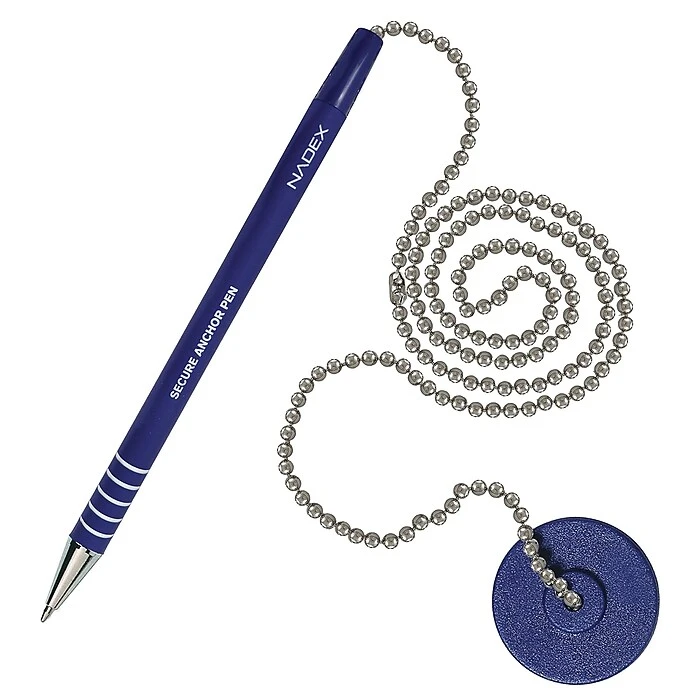 Need a secure writing utensil for your office? Check out the Nadex Coins Ball and Chain Security Pen Set! This pack includes 12 blue security pens with a ball and chain, 12 bases, and 12 refills.