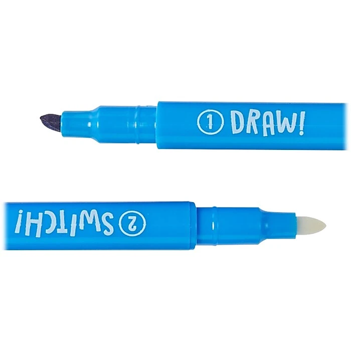 Switch-Eroo color-changing markers surprise and delight with one regular color and one mystery color change. Color with the regular side, then use the mystery color change side (a white tip) for a wonderful transformation. Add an extra artsy layer with this amazing set that is sure to spark happiness.