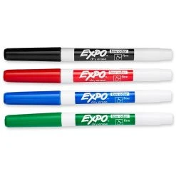 EXPO® Low Odor Dry Erase Markers, Bullet Tip, Assorted Colors, 4 Per Pack, 3 Packs, (SAN82074-3)