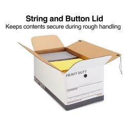 Staples Heavy Duty File Box, String And Button Lid, Letter, White/Gray, 12/Case (TR59223)