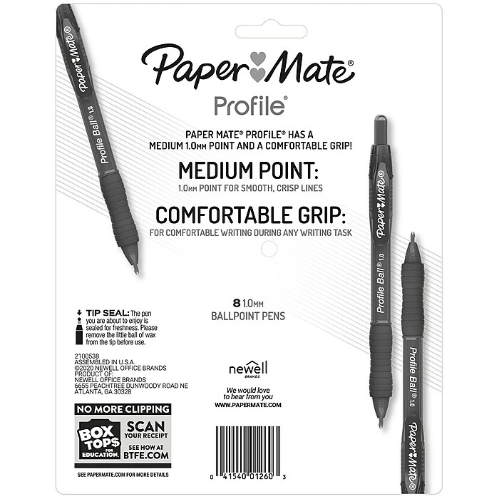 Make smooth, crisp lines with Paper Mate Profile Retractable ballpoint pens. These retractable pens now come in a 1.0mm tip, so your writing stands out on the page. Profile pens also include a soft grip for comfortable writing during any writing task.