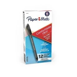 Sign documents and do paperwork with these medium-point black ballpoint pens. The medium points of these pens deliver consistent ink flow from tip to paper, so lines are smooth, while the capped design prevents unwanted marks when not in use. These Paper Mate ComfortMate Ultra black ballpoint pens have rubberized barrels to provide a solid grip and comfort while writing.