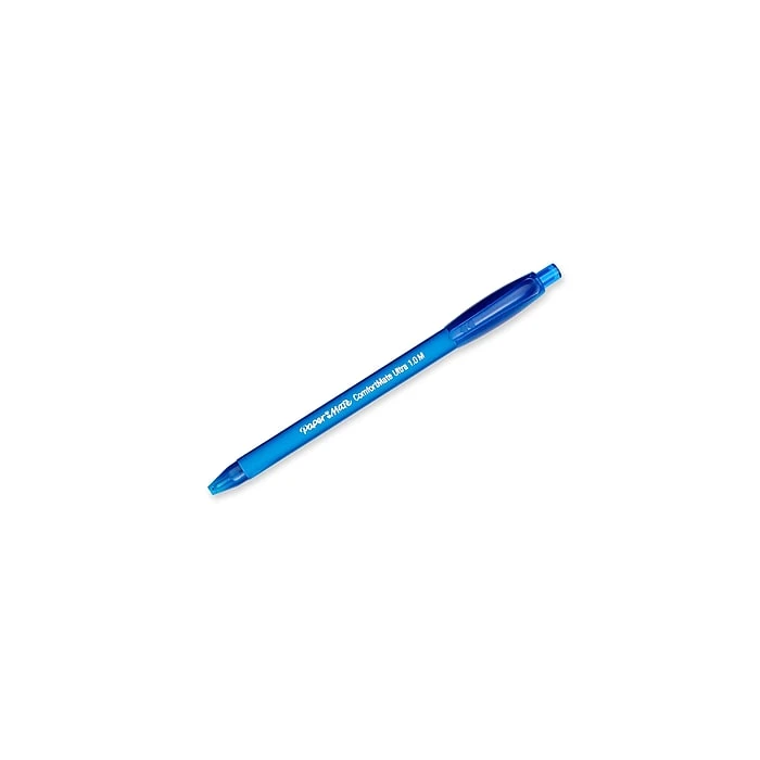Improve grip with these medium-point pens. Their soft-feel round barrels help boost readability through enhanced control and precision during writing sessions. The Lubriglide ink system of these Paper Mate ComfortMate Ultra blue pens creates a smooth flow that reduces blemishes in finished pieces.
