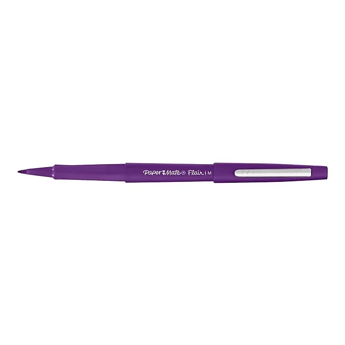 Create noticeable corrections, notes and other writing with this purple pen. The protective cap keeps the ink from drying out and protects papers from unintentional marks, while the quick-drying formula helps prevent streaks and smudges for clean, tidy results. This Paper Mate Flair purple pen includes a pocket clip, so you can easily bring it on the go, and has a felt tip that produces smooth, consistent lines.