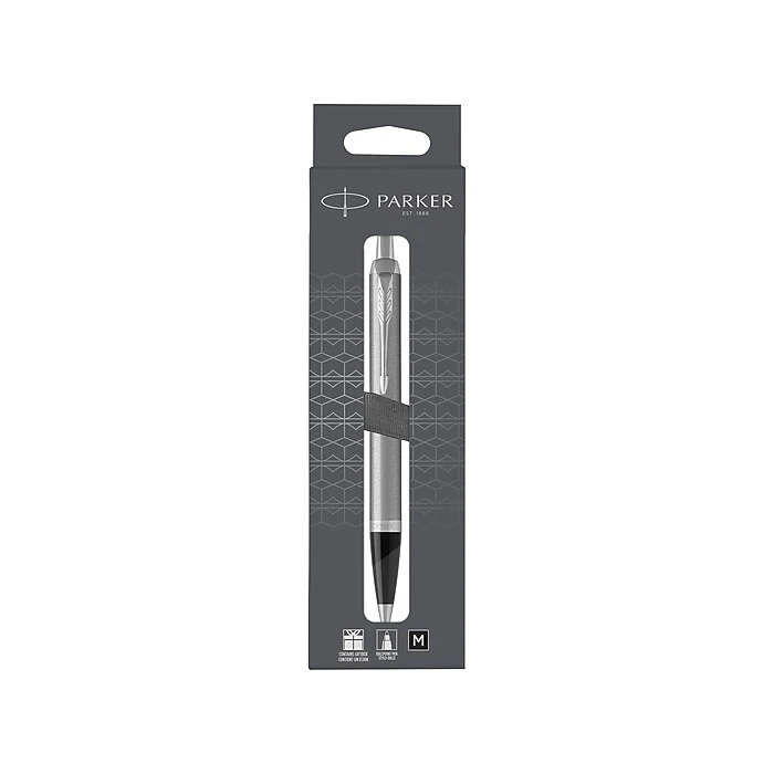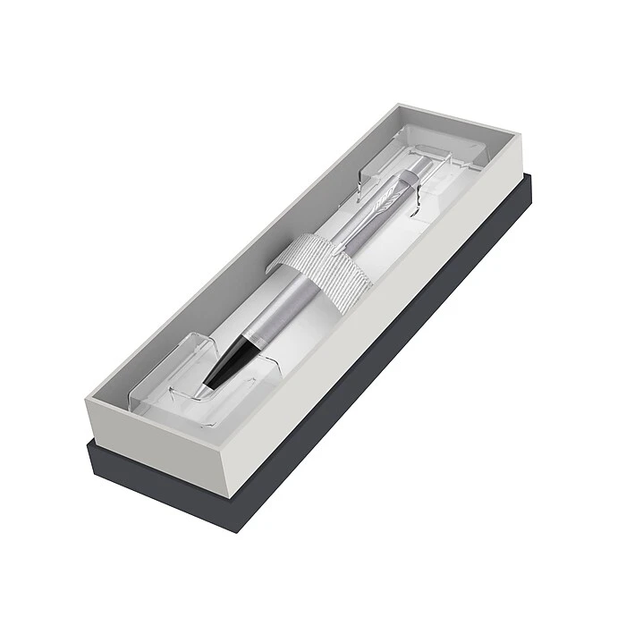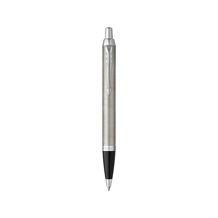 At once smart, polished, and professional, the Parker IM stainless steel is a great partner with unlimited potential. The sleek tapered shape pairs seamlessly with innovative designs to make a striking statement. The high-shine chrome-finish trims compliment the stainless steel body, making this Parker IM pen the perfect writing instrument for students and professionals. Retracting with a satisfying click, the ballpoint tip and QUINKflow ink ensure an exceptionally smooth and reliable writing experience. Accepts QUINK ballpoint and gel ink refills. Every detail is refined to deliver a writing experience that is at once dependable and faithful to over 125 years of the Parker brand heritage.
