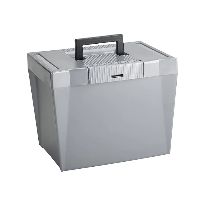 Secure important documents in this hanging file box. The latching lid prevents items from falling out, and the carrying handle makes it easy to transport paperwork to and from the office. A spacious storage compartment offers room for up to 10 inches of file folders, so you can keep all your most important papers in one place. This Pendaflex economy file box is made from impact-resistant plastic for long-lasting use.