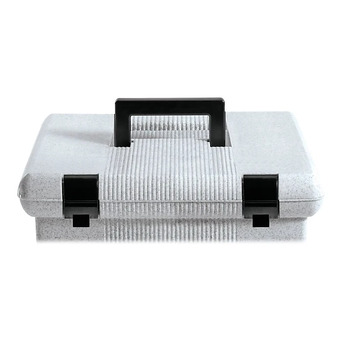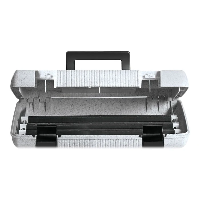 Organize and safely transport files with this granite file box. Three included Pendaflex hanging folders with tabs and blank inserts let you sort and classify documents immediately, and the self-locking lid keeps documents and files private while preventing lost papers during transit. The lightweight plastic construction of this Esselte file box is easy to carry, and the sturdy, recessed handle folds down for storage.