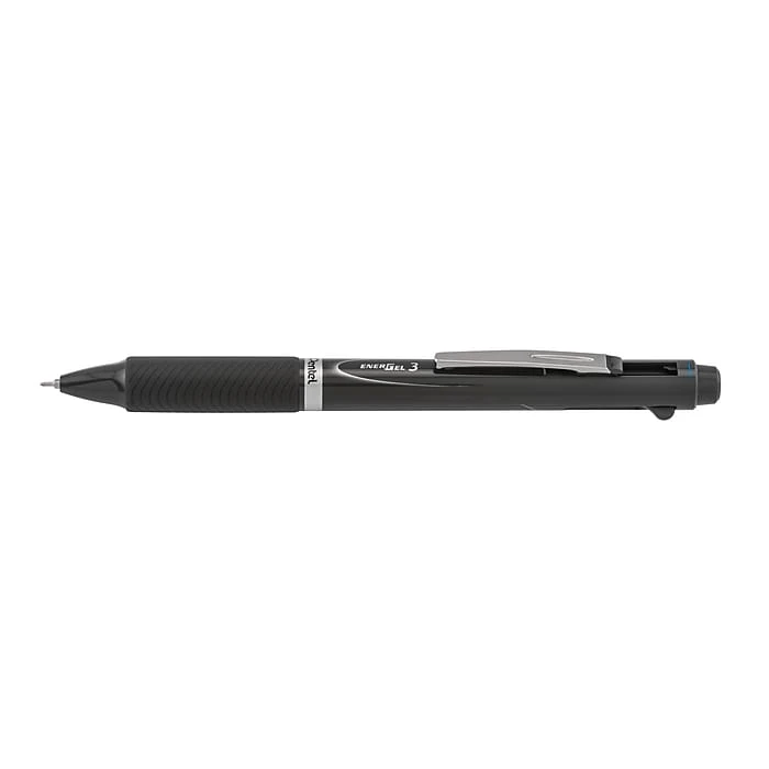 EnerGel 3 multifunction 3-ink fine-line gel pens provide blue, black and red ink all in one single writing utensil. The gray plastic barrel creates a professional appearance, while high-performance ink combines liquid and gel for a smooth and consistent performance. Each fine point measures 0.5 mm writes thin lines for maximum efficiency. The latex-free grip provides comfort during marathon note-taking sessions, and refillable ink saves money on future supplies by removing the need for more pens.