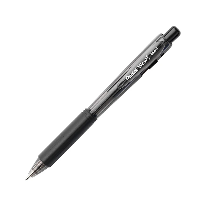 Write essays, take notes, and work on other tasks with these retractable medium-point black ballpoint pens. The latex-free grips offer strong control and a comfortable hold, and the medium points let each pen create rich, smooth lines while maintaining sharpness. These Pentel WOW! retractable black ballpoint pens don’t smear or bleed, and with 18 per pack, it’s easy to stay stocked up.