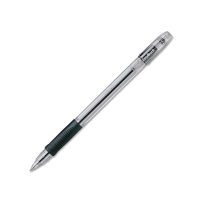 Experience clean, smooth writing by using these fine-point pens. With a rubber grip, these pens provide increased comfort for lengthy writing projects, and the transparent barrel lets you easily monitor the ink supply, preventing you from running out without warning. These Pilot EasyTouch black ballpoint pens have a 0.7mm tip, producing precise, accurate lines.