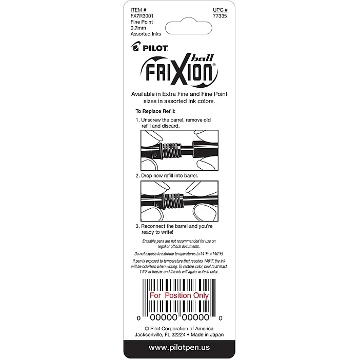 Combine the smooth writing experience of a pen and the erasability of a pencil with these pen refills. The fine points on these Pilot FriXion Ball 0.7mm erasable assorted gel-ink pen refills let you write with sharp accuracy.
