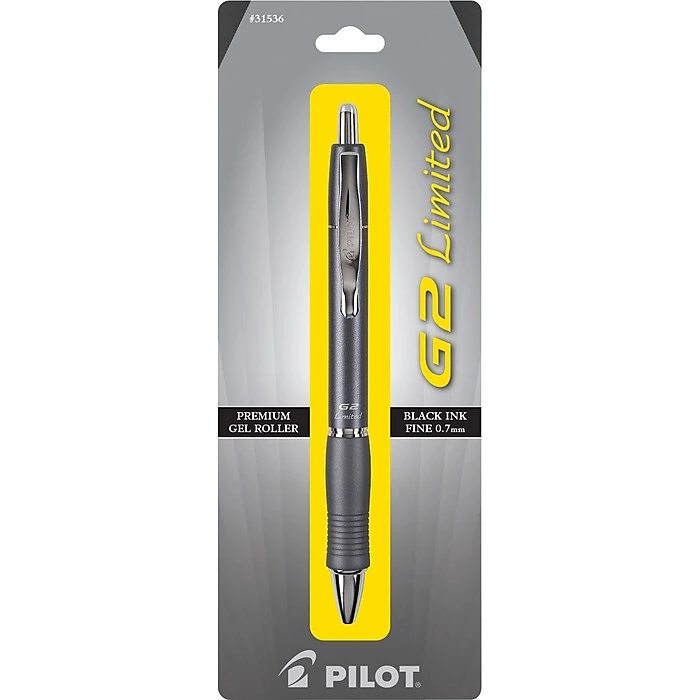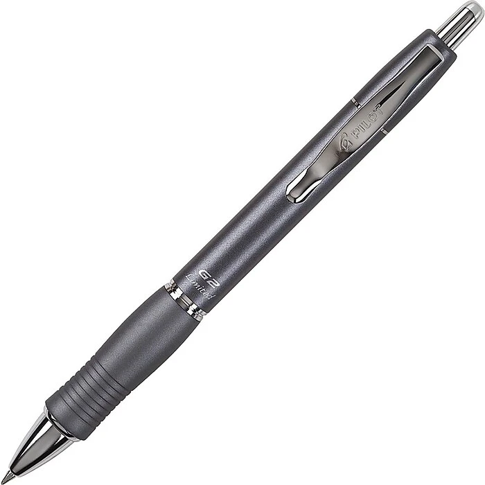 The G2 Limited Retractable Gel Roller lets you enjoy the writing quality of America’s #1 selling gel ink pen in a sophisticated grey metallic body with rich stainless steel accents. Experience an ultra smooth, long lasting writing experience. In black ink with a fine (0.7 mm) point size. Featuring a soft rubber grip for writing comfort, G2 limited is the stylish writing instrument you have been looking for. Refillable with G2 gel ink refills. nk with a fine (0.7 mm) point size. Featuring a soft rubber grip for writing comfort, G2 limited is the stylish writing instrument you have been looking for. Refillable with G2 gel ink refills.