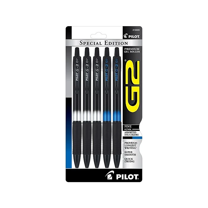 - Smooth, long-lasting premium gel ink in assorted colors: blue and black