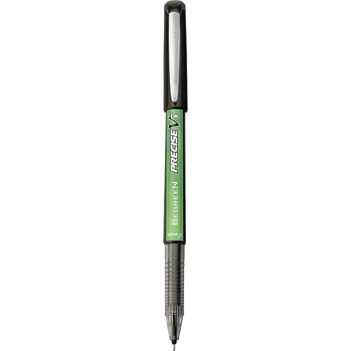 Make crisp, legible office notes with these Pilot Precise V5 BeGreen rolling ball pens. The extra-fine-point pens feature a Patented Precision Point Technology for clean, skip-free writing, and a unique liquid ink formula lends rich, vibrant colors every time you write. These Pilot Precise V5 BeGreen rolling ball pens are made from 89.2 percent recycled content to contribute to environmental protection, and you can refill them with the Precise V5 RT refill for continued use.