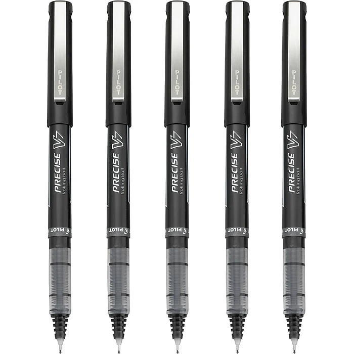 Take notes with crystal-clear precision with these Pilot Precise V7 premium rolling ball stick pens. The clear barrel lets you monitor your ink supply so you never run out unexpectedly, while the capped design keeps your pocket, bag or desk drawer safe from staining. These Pilot Precise V7 premium rolling ball stick pens have a fine point for creating small details.