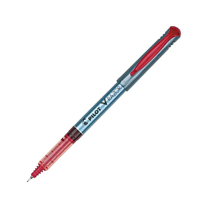 Edit documents and worksheets easily with these Pilot V Razor Point red marker pens. Each pen has an advanced liquid-ink feed system and a strong acrylic fiber point, providing clear, fine lines. These Pilot V Razor Point red marker pens have a visible ink supply and a sturdy pocket clip, making it easy to grade papers on the go.