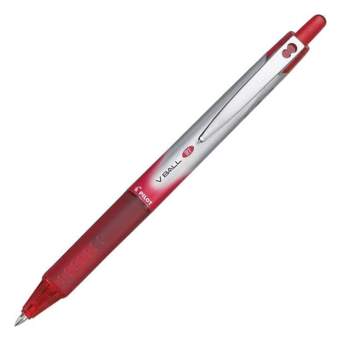 Enjoy crisp, clear lines every time you write with Pilot VBall RT Retractable Rolling Ball Pens. The ink system allows the ink to smoothly flow from the reservoir to its tip. They alson come equipped with an airplane safe system to keep the ink from leaking during travel. An integrated metal clip at the back enables you to attach the pen to your pocket or your notepad. king during travel. An integrated metal clip at the back enables you to attach the pen to your pocket or your notepad.