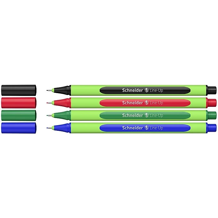 The Schneider Line-Up is the first fineliner with a barrel consisting of 88% bio-based plastic and recipient of the world’s best-known eco-label “Blue Angel” for resource-saving and environmentally friendly production. Relaxed writing is ensured with the rubberized, ergonomic triangular barrel. Metal-encased, stainless steel writing tip suitable is for use with rulers and templates and writes in an approximate line width of 0.4 mm. The cap-off ink does not run dry even if the cap is removed for 2-3 days (except neon colors). With its wide range of colors and slim design it is a perfect companion for putting drawing and writing in the spotlight. The Line-Up is produced CO2 neutral. Includes convenient adjustable case stand with four (4) fineliners: Sapphire-Black, Romantic-Red, Blackforest-Green, Lapis-Blue. Sold as 3 packs, 12 fineliners total.Made in Germany, Schneider products are manufactured to the highest quality and environmental standards that have earned awards and accolades across the company’s 80+ year history. Known for reliability, functionality and sustainability, Schneider Writing Instruments are available at excellent price points to empower creativity and pen to paper. Each thought is worth writing down – the Schneider way.