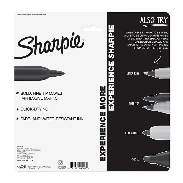 Crank up the color with Sharpie color burst fine point permanent markers! Intensely bright, the supercharged shades create energizing visuals that always stand out. Made to write practically everywhere, vivid Sharpie markers eliminate dull and boring. The original permanent marker, Sharpie has iconic ink that dries quickly and resists both water and fading. While pale imitations wither away, Sharpie markers make creations that endure. Featuring a bold fine point built for jaw-dropping marks, Sharpie color burst fine point permanent markers ignite courageous self-expression.