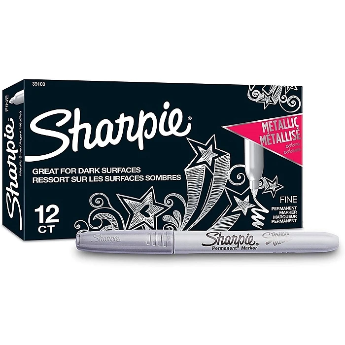 The Sharpie markers you know, but in metallic ink. Fade and water resistant ink further extends multiple project uses. Permanent on most surfaces. Marks on most hard-to-mark surfaces, including dark surfaces.