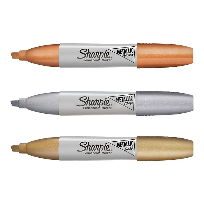 Get your shine on with Sharpie Metallic permanent markers. With a versatile chisel tip, create fine lines and thick marks with major style. Stand out in a crowd by using these metallic permanent markers for hand-lettering, coloring, labeling, and crafting. Each permanent marker is made with specially formulated ink designed to be quick-drying and fade- and water-resistant. Every mark boldly stands out on light and dark surfaces, meaning they’re perfect for projects on a black background.