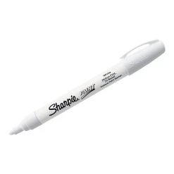 Enhance posters, advertisements and notices easily with this paint marker. The bright white color shows up clearly on most colored papers, providing easy readability, while the oil-based design makes washing from windows and other surfaces simple. This Sharpie Paint white water-based marker includes a cap, keeping ink fresh and ready to go, and features an acid-free formula that stands up to fading for added durability.