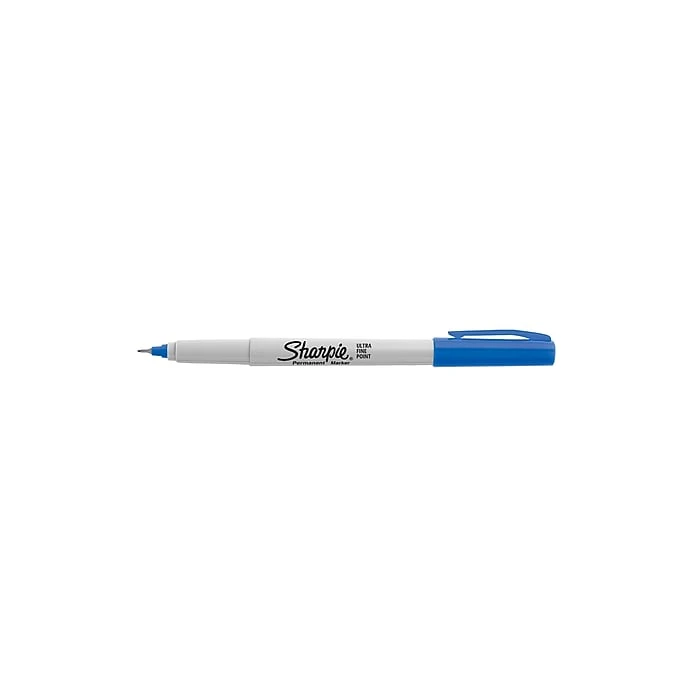 Add bold color to projects with these blue permanent markers. These markers feature an ultra-fine point and permanent ink that is waterproof, smudge proof and fade resistant. Use this 12-pack of Sharpie ultra fine point permanent markers on a variety of surfaces, including paper, plastic, metal and other nonporous surfaces.