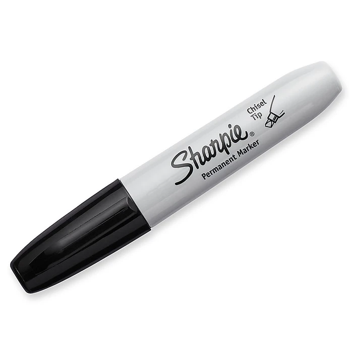 Write on almost any hard surface with these Sharpie chisel-tip black permanent markers. The quick-drying ink resists water, smearing and fading and works on glass, metal or almost any other hard surface. The markers come in a 4-pack, so keeping your home or office stocked is easy. These Sharpie permanent markers have a chisel-tip, so you can create lines of variable widths with a single marker.