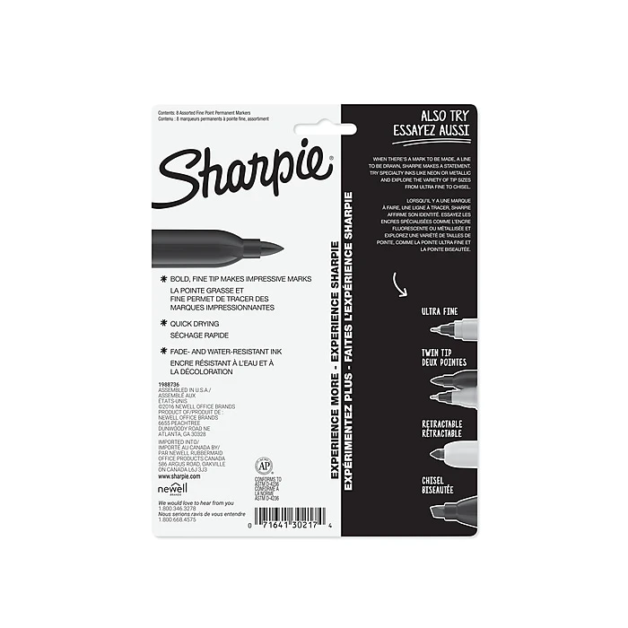 Made to mark practically anywhere, Sharpie permanent markers inspire you to transform ordinary surfaces into passionately creative statements. The original permanent markers feature iconic ink that dries quickly and resists both water and fading.
