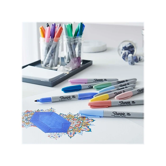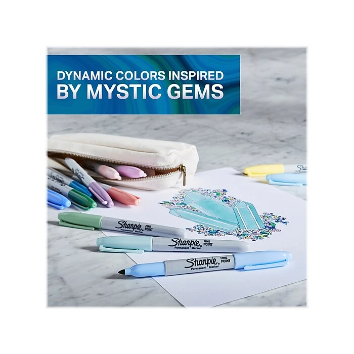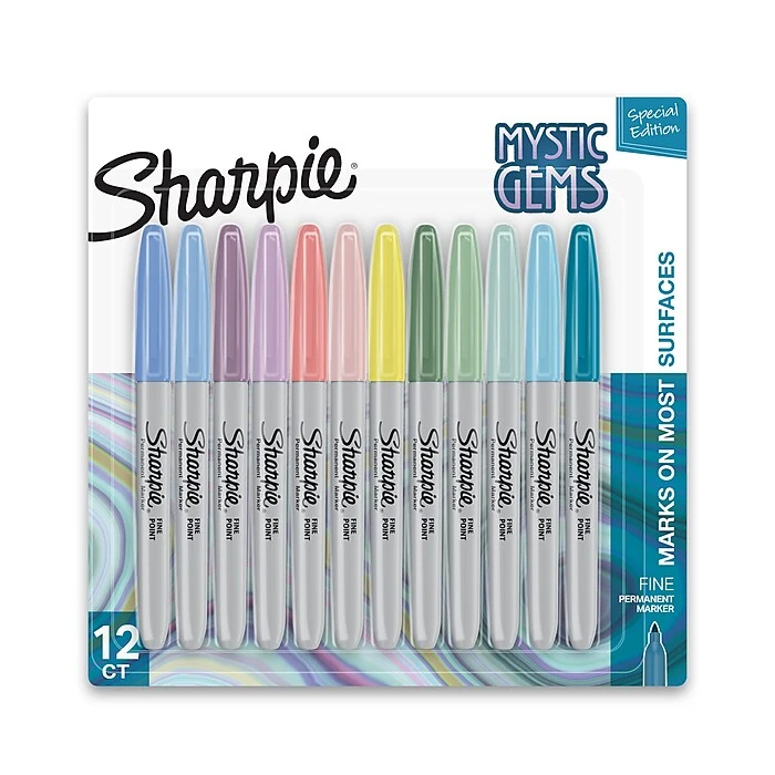 Made to mark practically anywhere, Sharpie permanent markers inspire you to transform ordinary surfaces into passionately creative statements. With special-edition mystic gem colors, these Sharpie markers combine soft pastels with darker, natural colors to produce vibrant marks inspired by the dynamic energy of gemstones. The original permanent marker, Sharpie features iconic ink that dries quickly and resists both water and fading. Finally, depend on these fine-point markers to leave bold marks that impress.