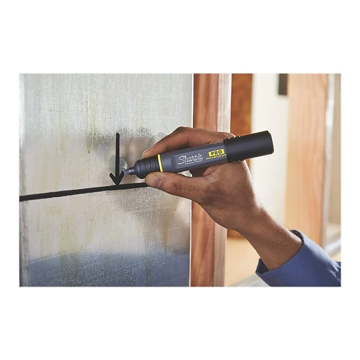 The Sharpie Pro is built job site tough and designed with the tradesman in mind. Its ink is formulated to mark on wet, oily, dusty, and abrasive surfaces. With a durable tip, break-resistant clip, and anti-roll barrel shape, the Sharpie Pro is sure to get the job done right the first time.