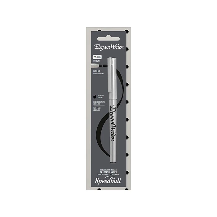 Refine your cursive handwriting with this black calligraphy marker. The crisp chisel nib ensures precise results for every stroke, and the free-flowing acid-free ink allows for seamless writing and resists fading for archival quality. The versatile medium tip of this Speedball Elegant Writer 2.5mm black calligraphy marker is suitable for writing subheadings, addresses on envelopes, or the body of an invitation letter.