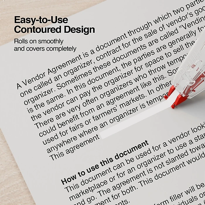 - Correction tape in ergonomic contoured design fits comfortably in the hand