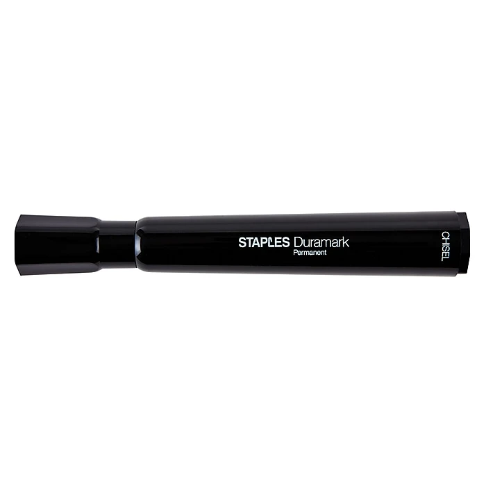 Write bold, black lines on signs or labels by using these Staples Duramark permanent tank markers. Each marker in this 8-pack features a chisel tip, which lets you vary line sizes on an array of projects, fill in name tags or create vivid signs. The quick-drying low-odor ink in these Staples Duramark permanent tank markers resists fading and is ideal to mark on most surfaces in offices or classrooms.