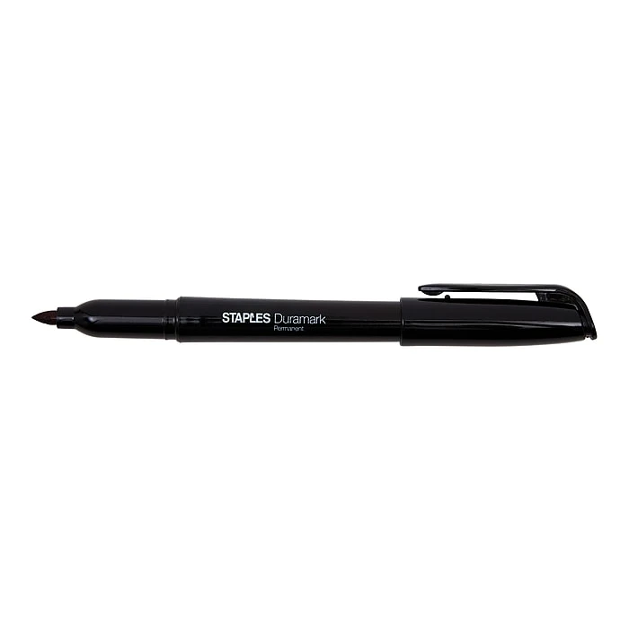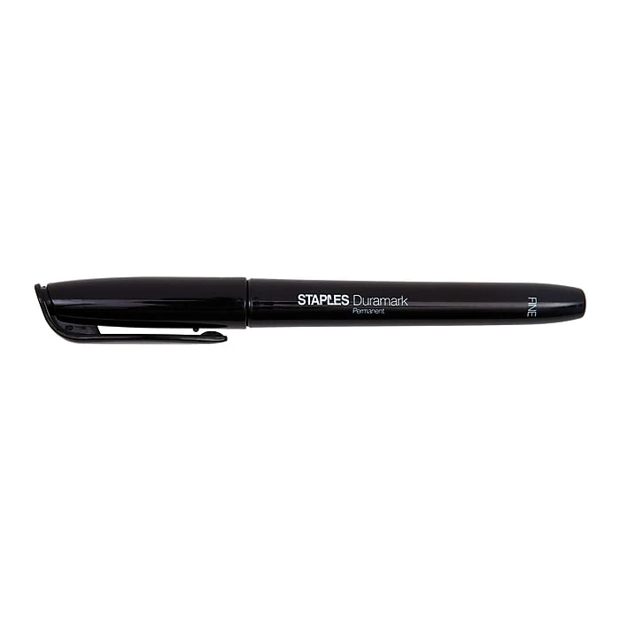 Create bold, precise lines with Staples Duramark fine-point permanent markers. Each marker in this 12-pack features a fine-point tip, ideal for filling in smaller labels or name tags. The black ink resists fading and can be used on most surfaces, making Staples Duramark fine-point permanent markers perfect for a variety of tasks at home or in the office.