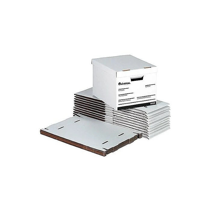 Archive documents inside these quick setup boxes. The lids fit snugly to protect paperwork from dirt and dust, and the corrugated construction offers long-lasting durability. Each file box features a convenient labeling section, offering ample space for recording dates, document type and other important information. These Universal lift-off lid boxes feature an easy-to-assemble design, making it simple to prepare your document storage system.